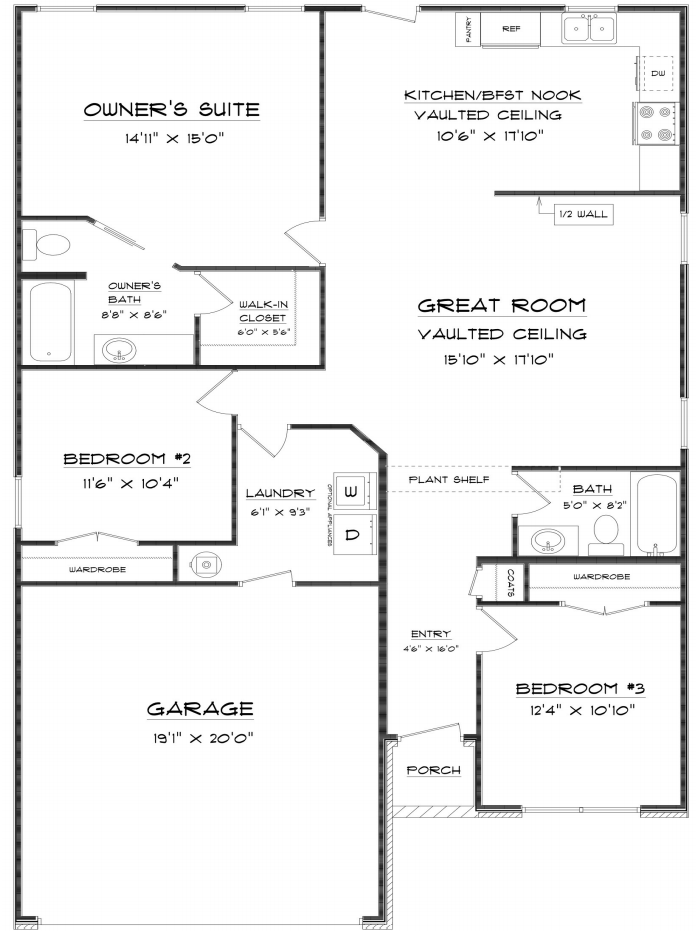 The popular Cambridge B model is a three bedroom, two bath ranch with an open floor plan. The eat-in kitchen flows right into the spacious family room. The master bedroom features an ensuite bathroom with a large walk-in closet. This home includes two additional bedrooms and a bathroom.