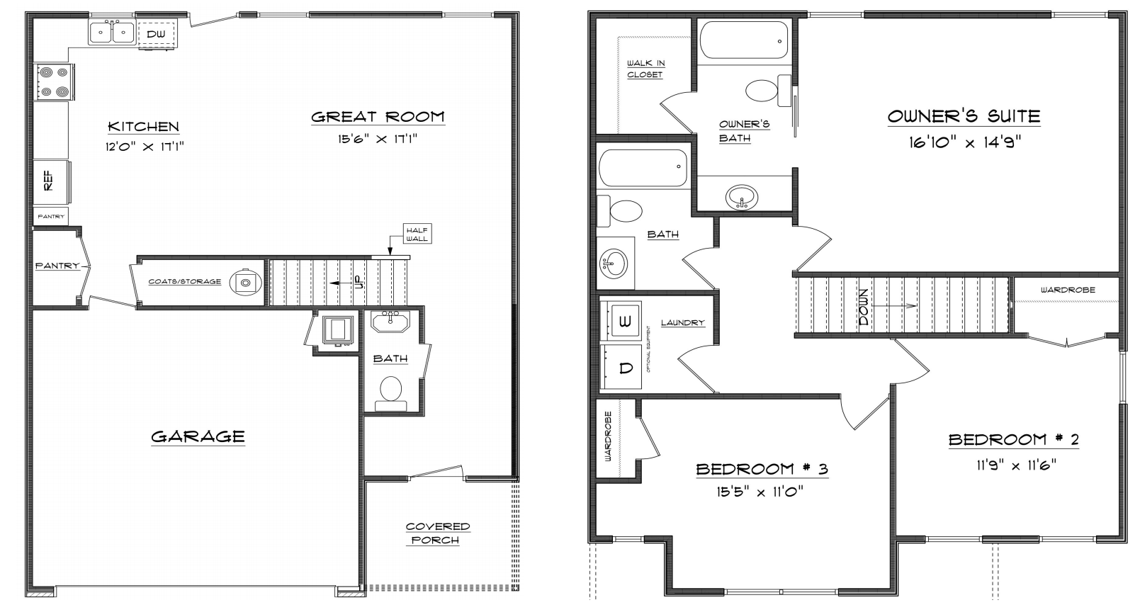 The Lincoln plan provides a first floor bedroom. Upstairs has two bedrooms, a loft area with a bones room above the garage. The first floor is a open floor plan in the kitchen living area.